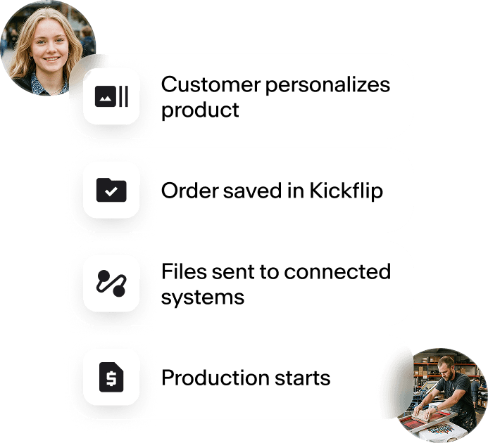 Kickflip saves our team a ton of time by eliminating the need to create custom mockups for customers. Customers can build their product themselves and place an order instantly, without any back-and-forth.